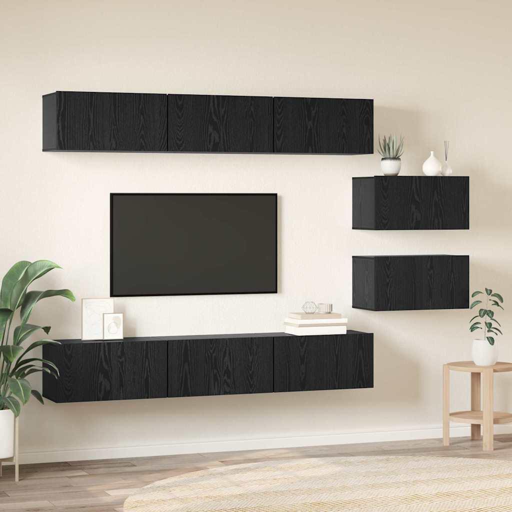 Conjunto de mueble de TV 8 pcs Roble Negro Madera contrachapada
