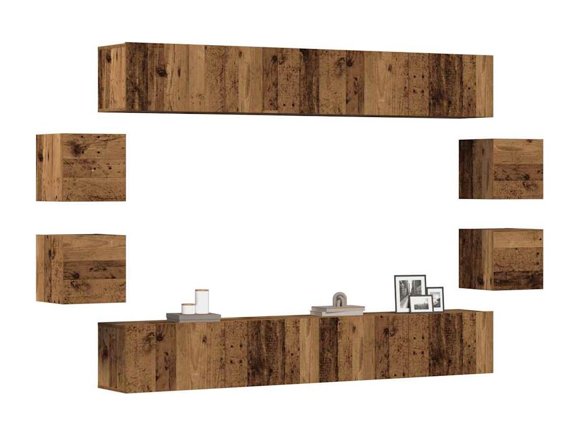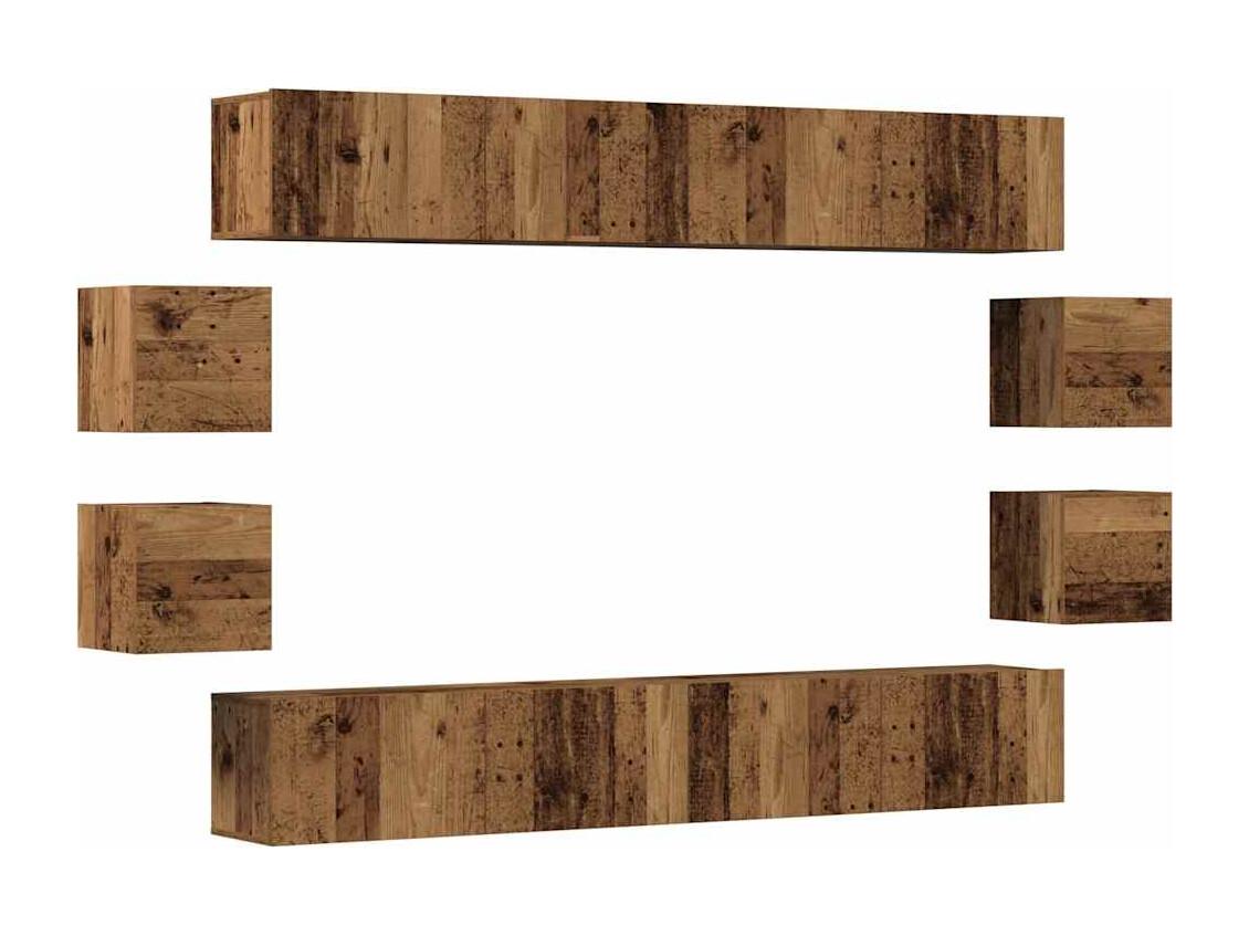 Conjunto de mueble de TV 8 piezas montado la pared madera vieja