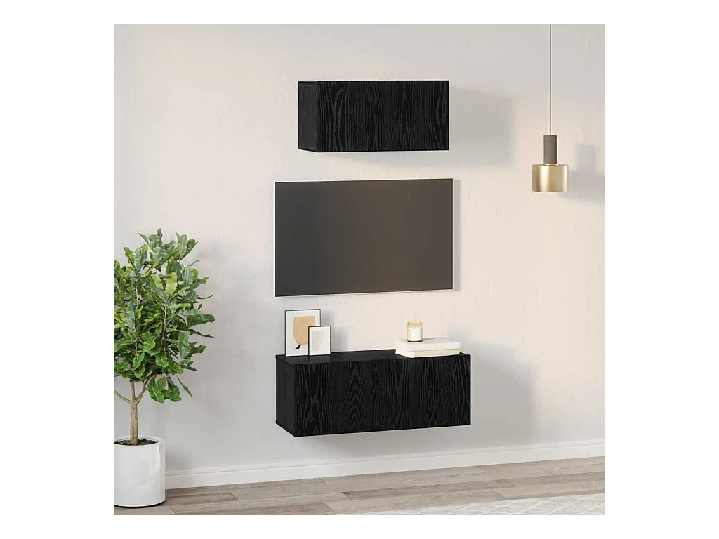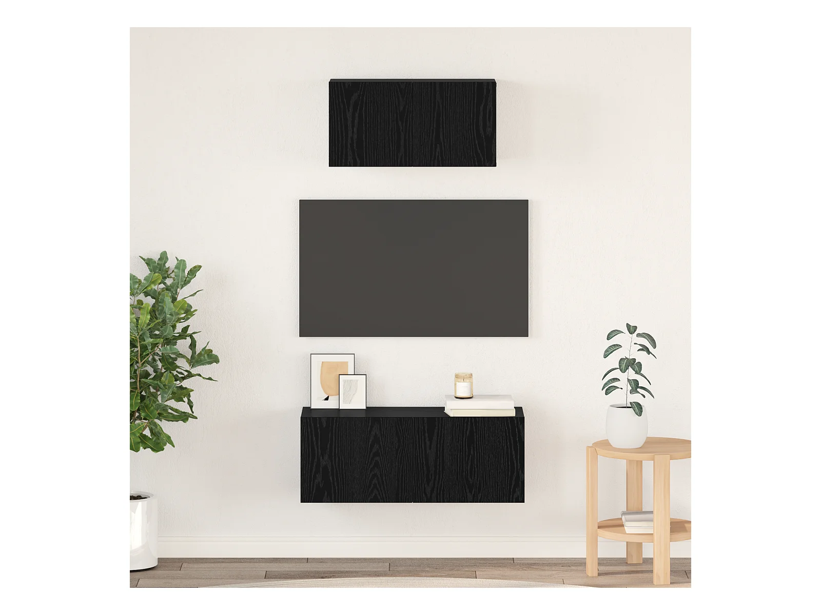 Mueble de TV | Mueble de salón de Pared Roble negro Madera contrachapada