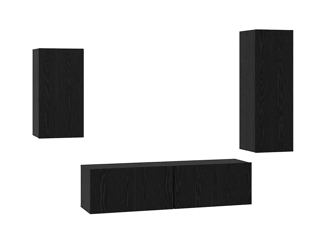 Conjunto de Mueble de TV | Mueble de salón Montaje en la pared 5 pcs Roble negro