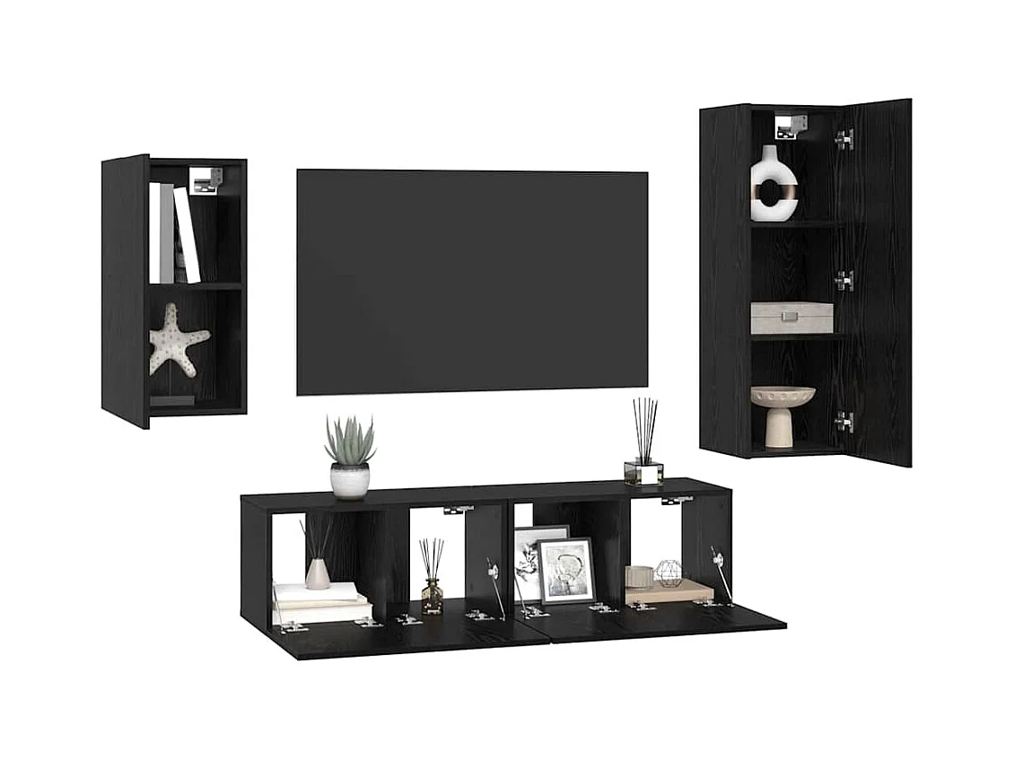 Conjunto de Mueble de TV | Mueble de salón 4 pcs Roble negro Madera contrachapada