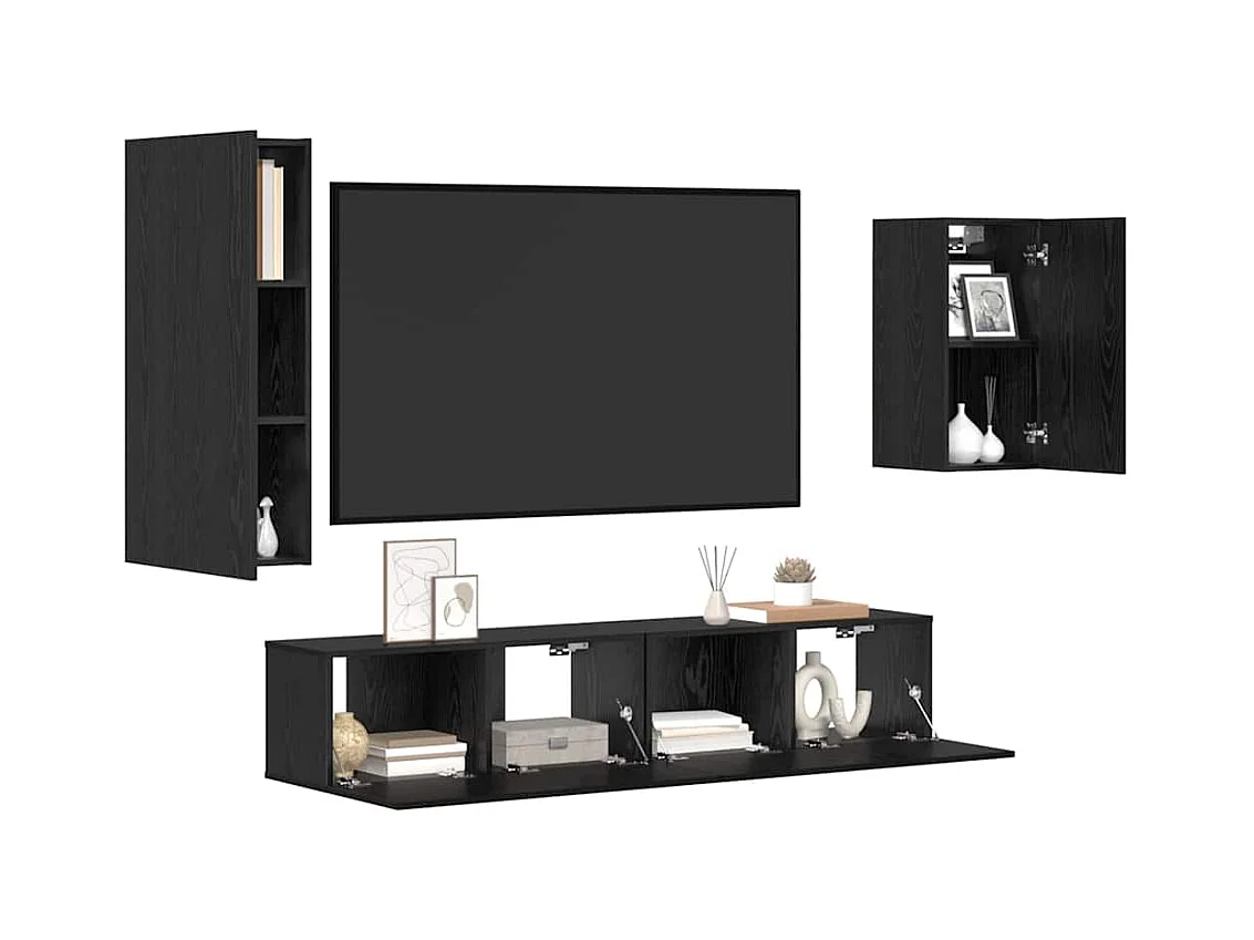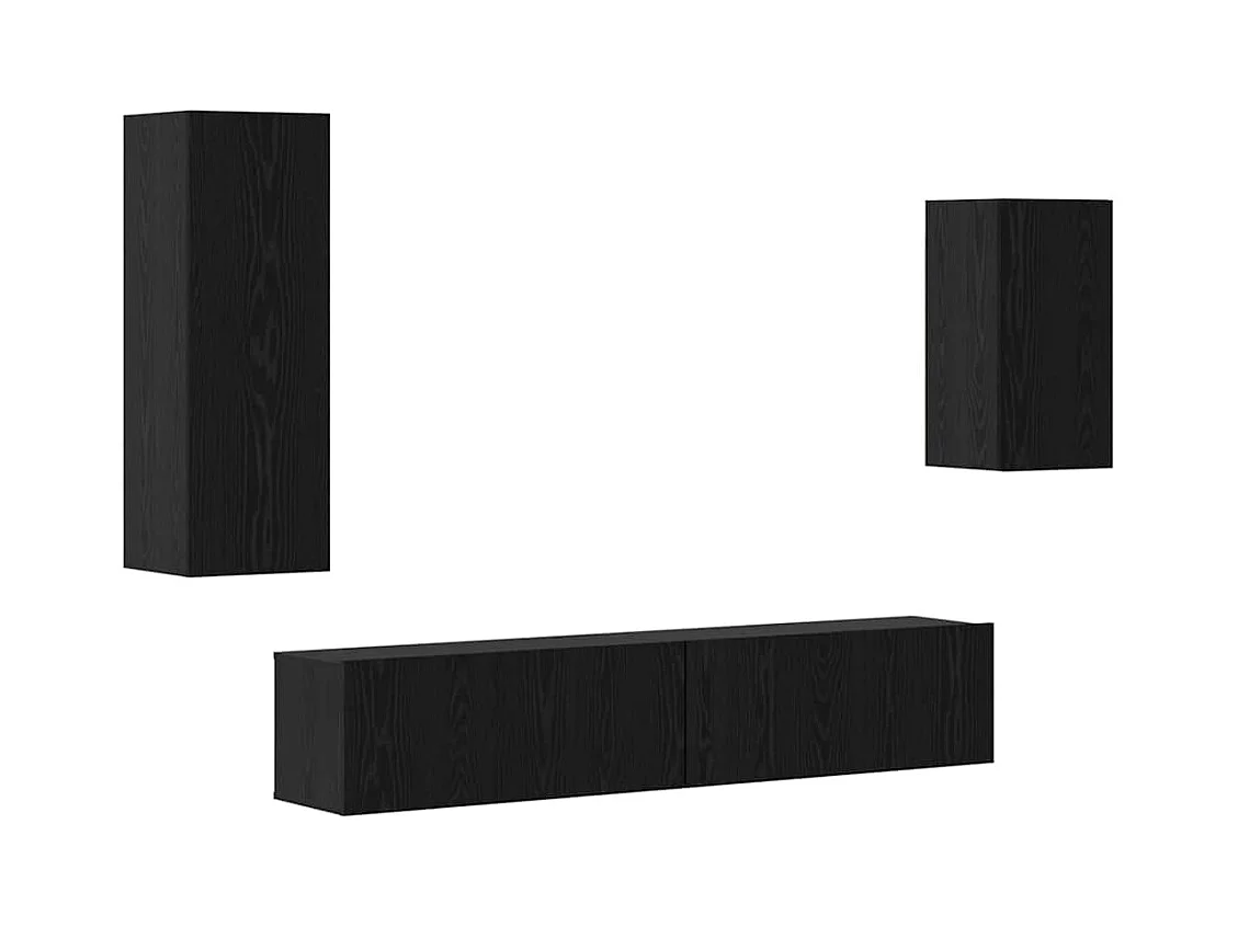 Conjunto de Mueble de TV | Mueble de salón Montaje en la pared 5 pcs Roble negro