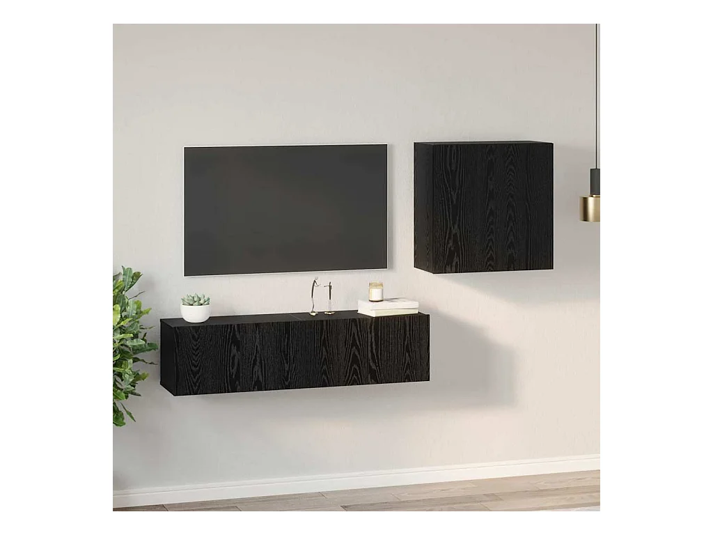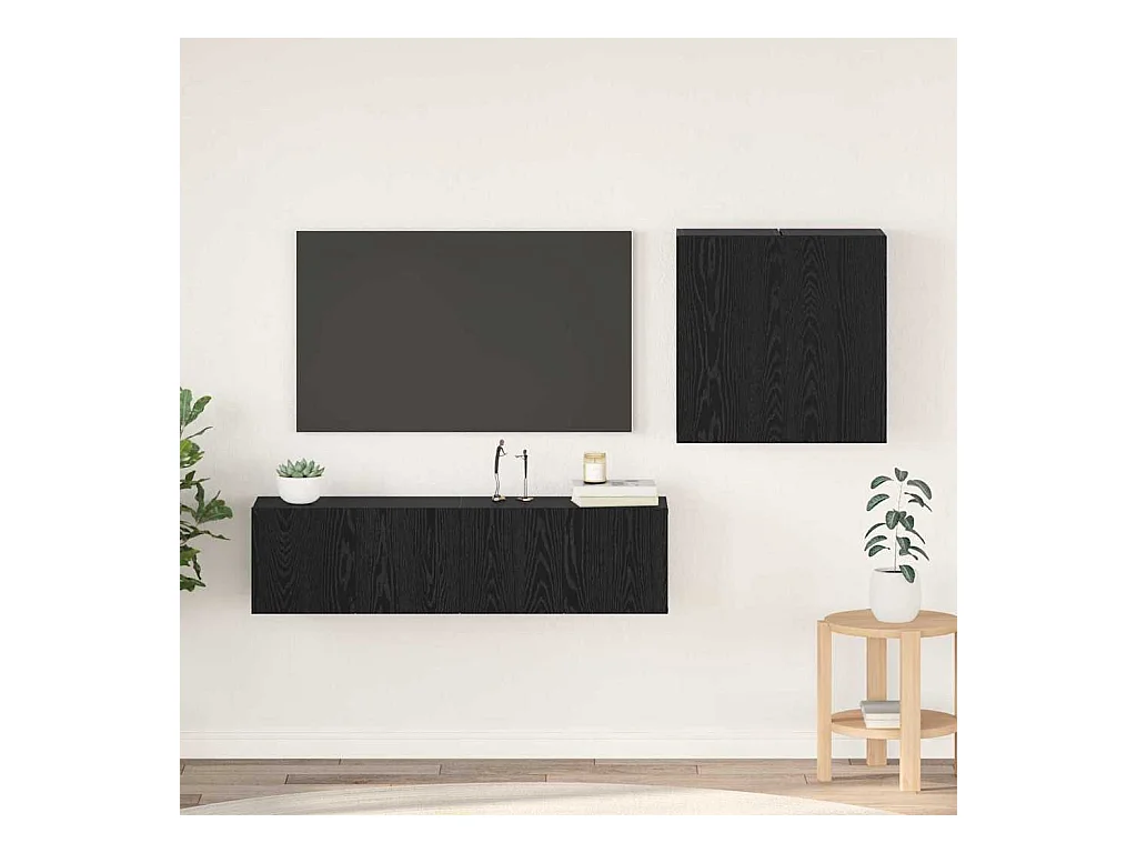 Mueble de TV | Mueble de salón de Pared Roble negro Madera contrachapada