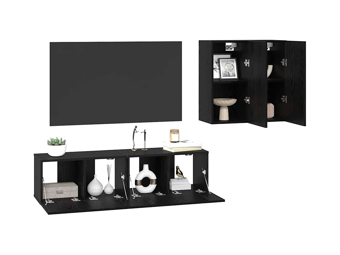 Set de muebles para TV | Gabinetes de TV | Muebles de salón 4 piezas madera contrachapada negro
