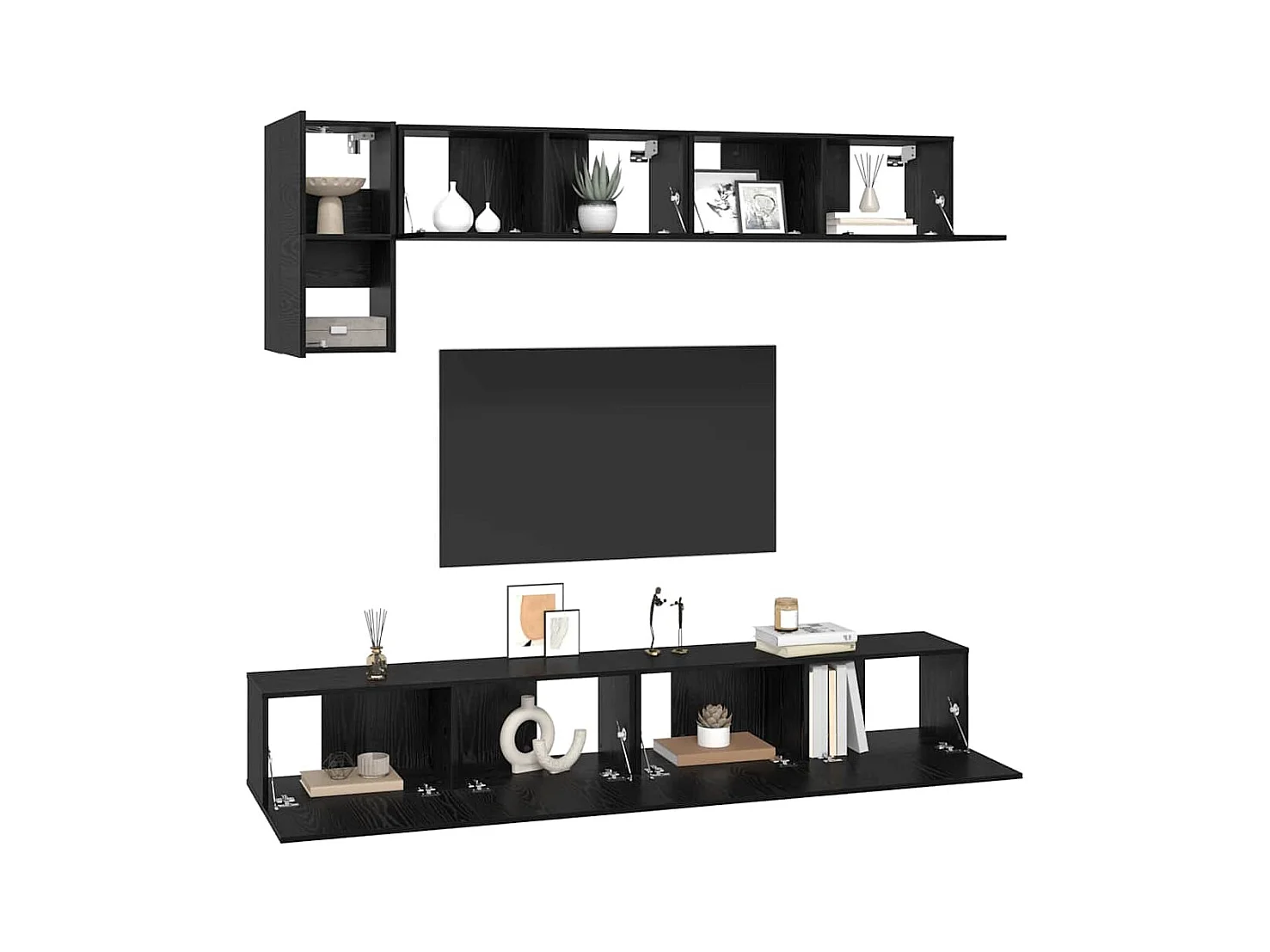 Set de muebles para TV | Gabinetes de TV | Muebles de salón 4 piezas madera contrachapada negro