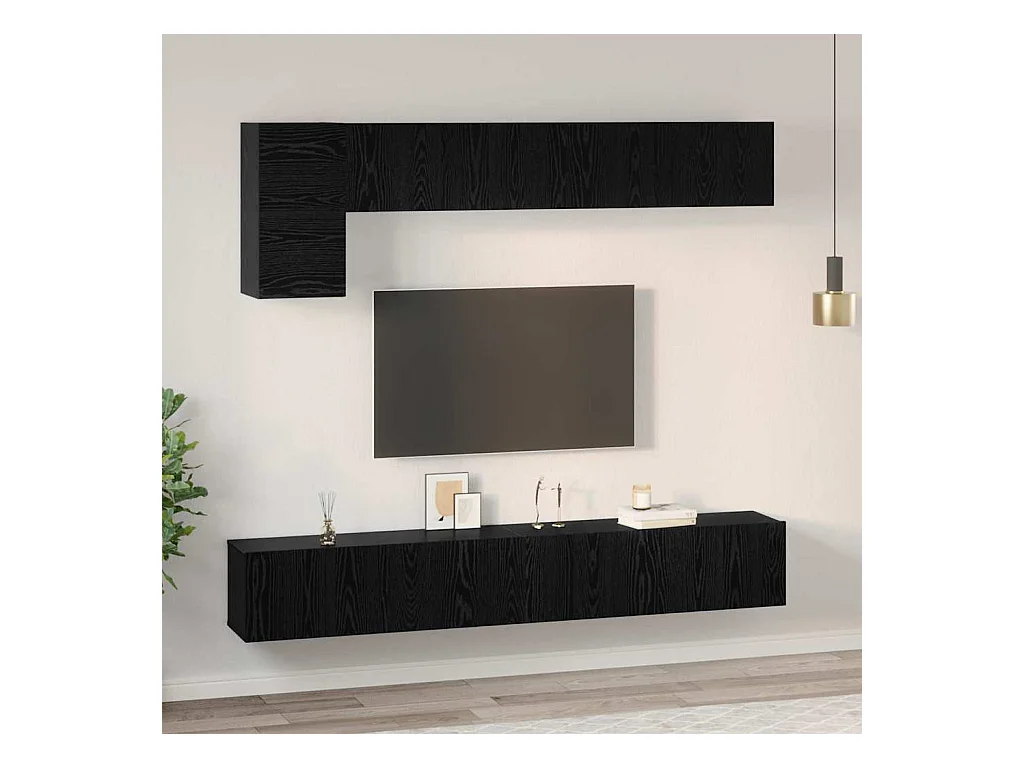 Conjunto de Mueble de TV | Mueble de salón 7 pcs Roble negro 60 x 30 x 30 cm