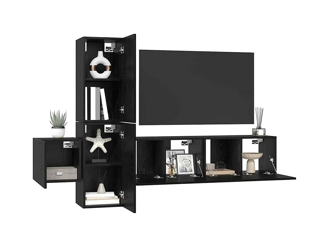 Set de muebles para TV | Gabinetes de TV | Muebles de salón 4 piezas madera contrachapada negro