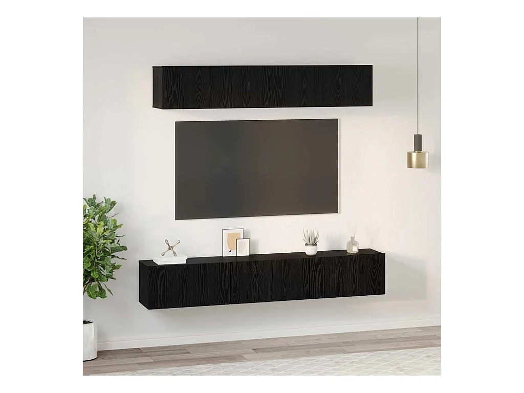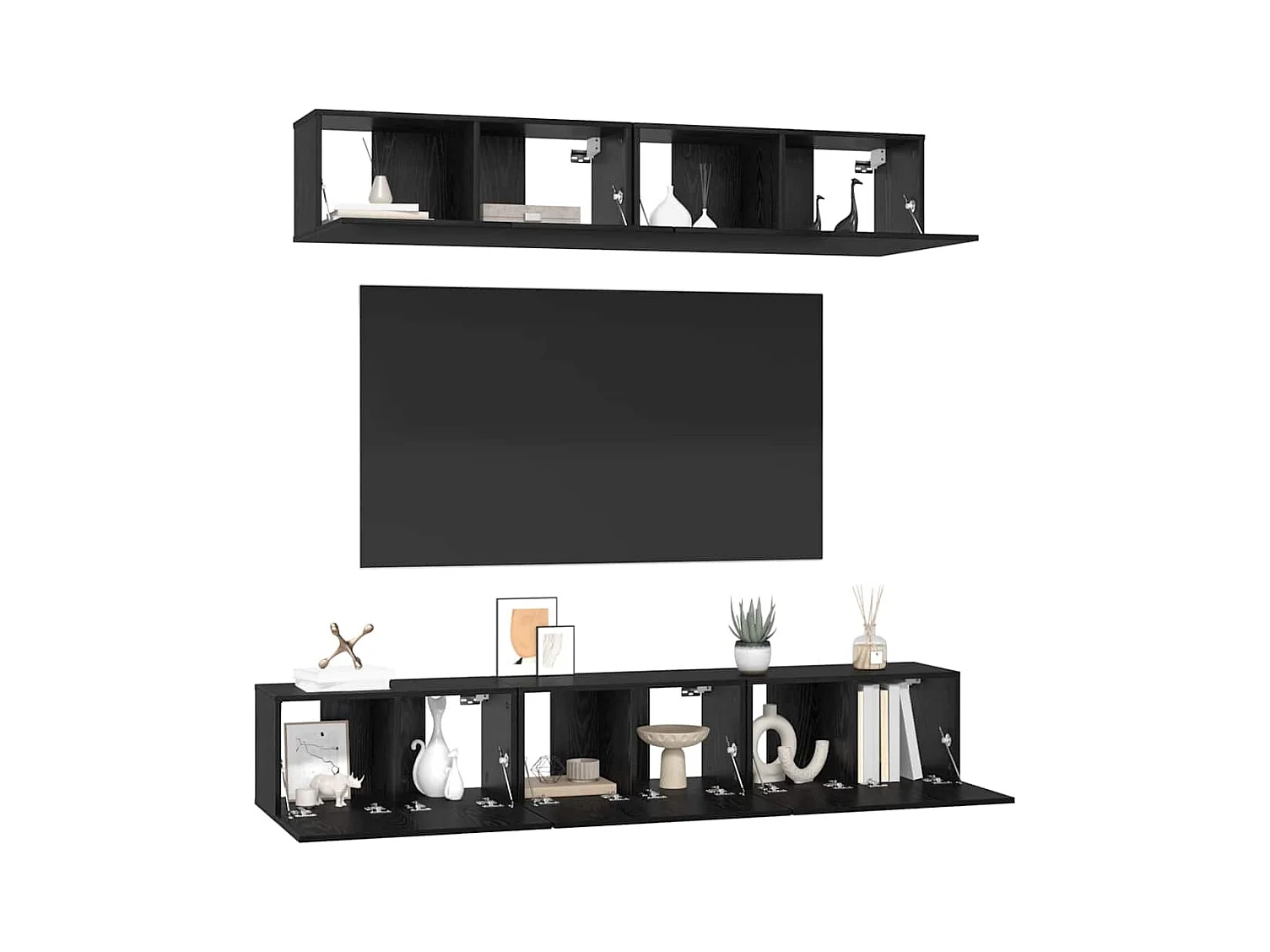 Mueble de TV | Mueble de salón de Pared 4 pcs Roble Negro Madera contrachapada