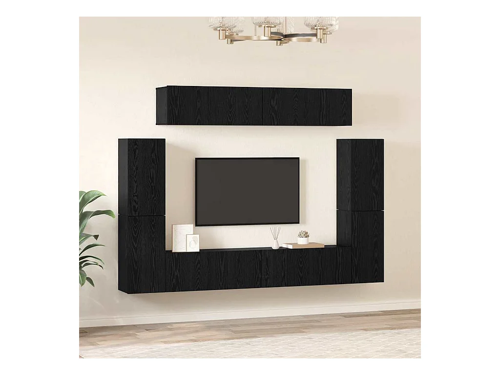 Conjunto de Mueble de TV | Mueble de salón 8 pcs Roble negro 80 x 30 x 30.5 cm