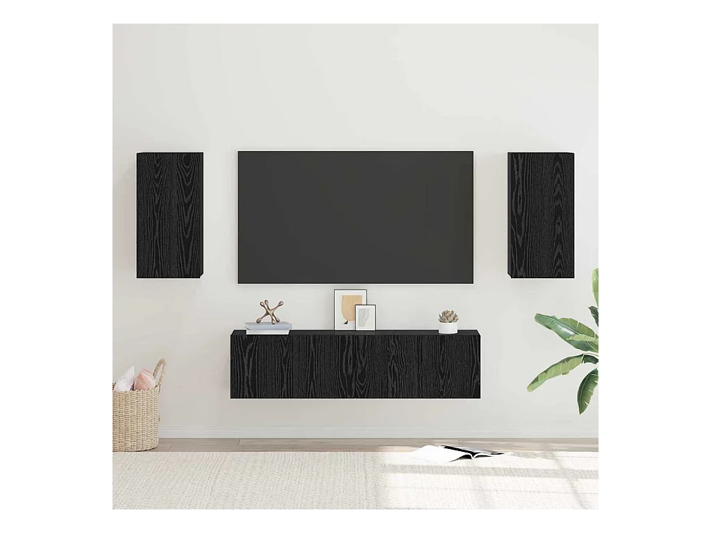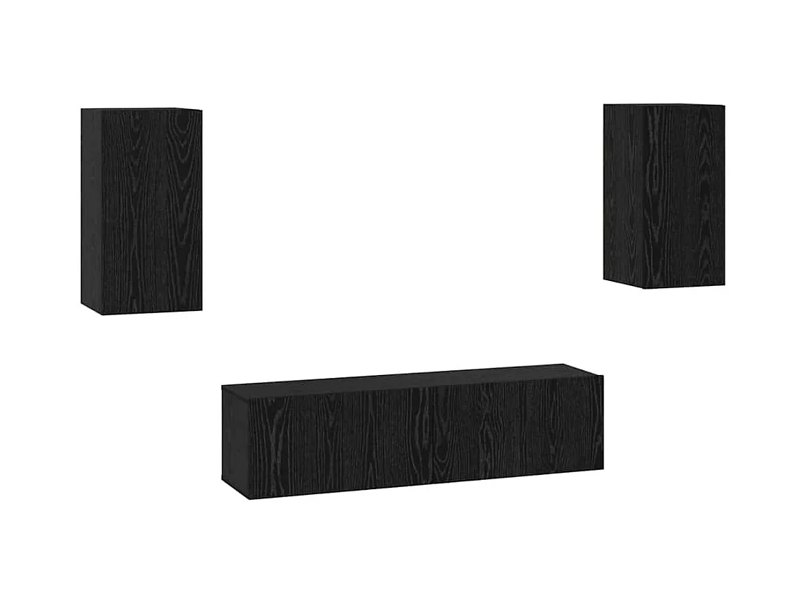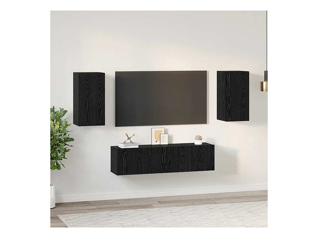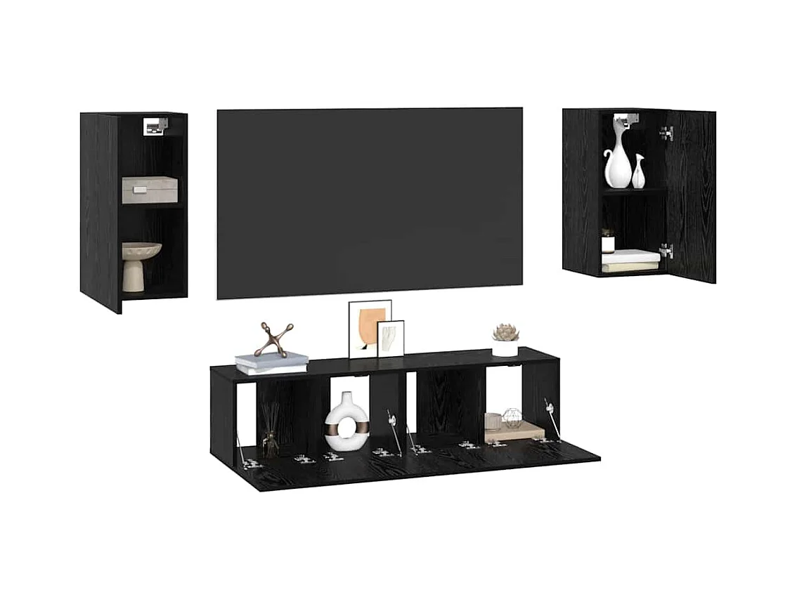Conjunto de Mueble de TV | Mueble de salón Montaje en la pared 4 pcs Roble negro