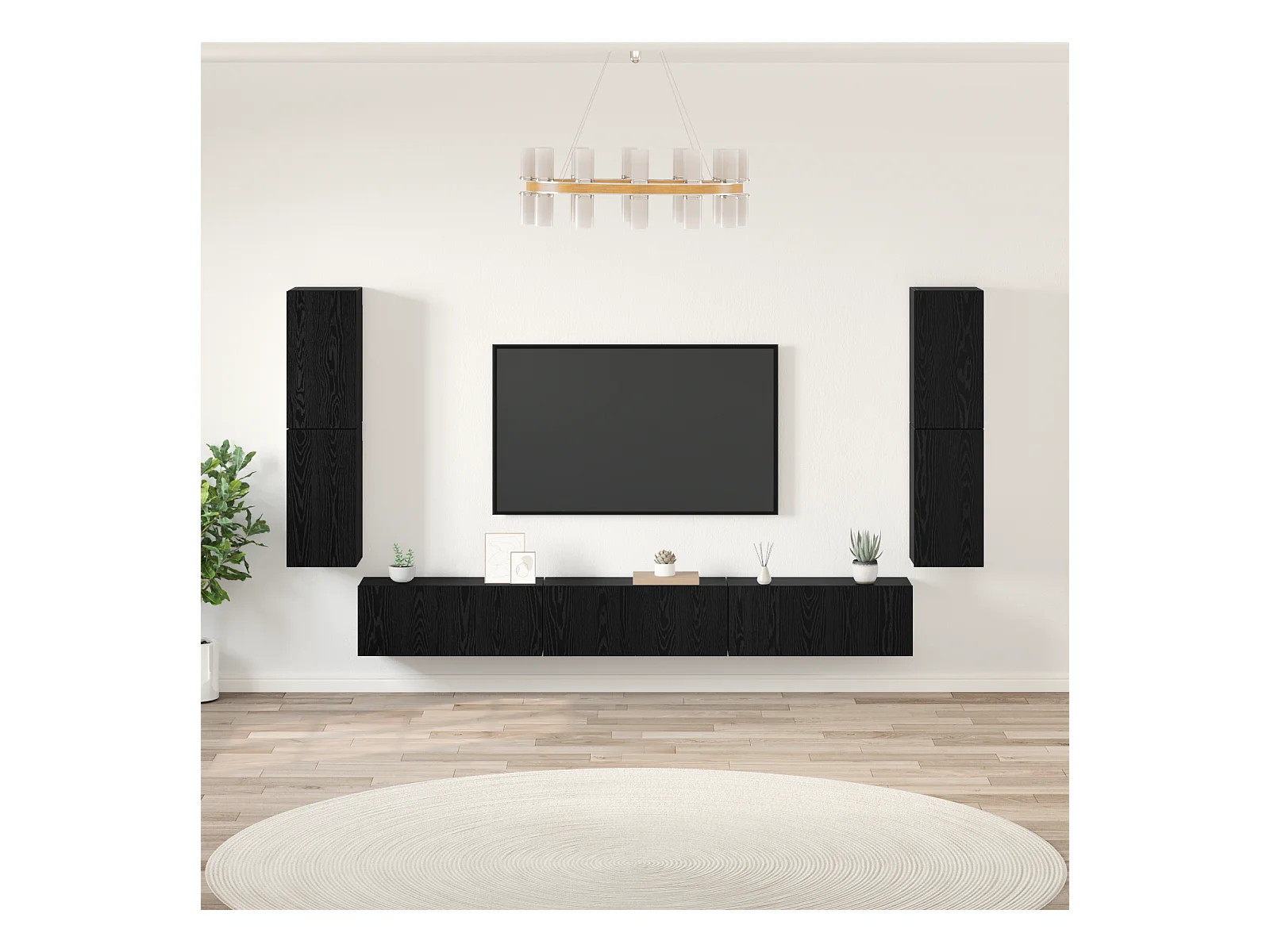 Conjunto de Mueble de TV | Mueble de salón Montaje en la pared 6 pcs Roble Negro