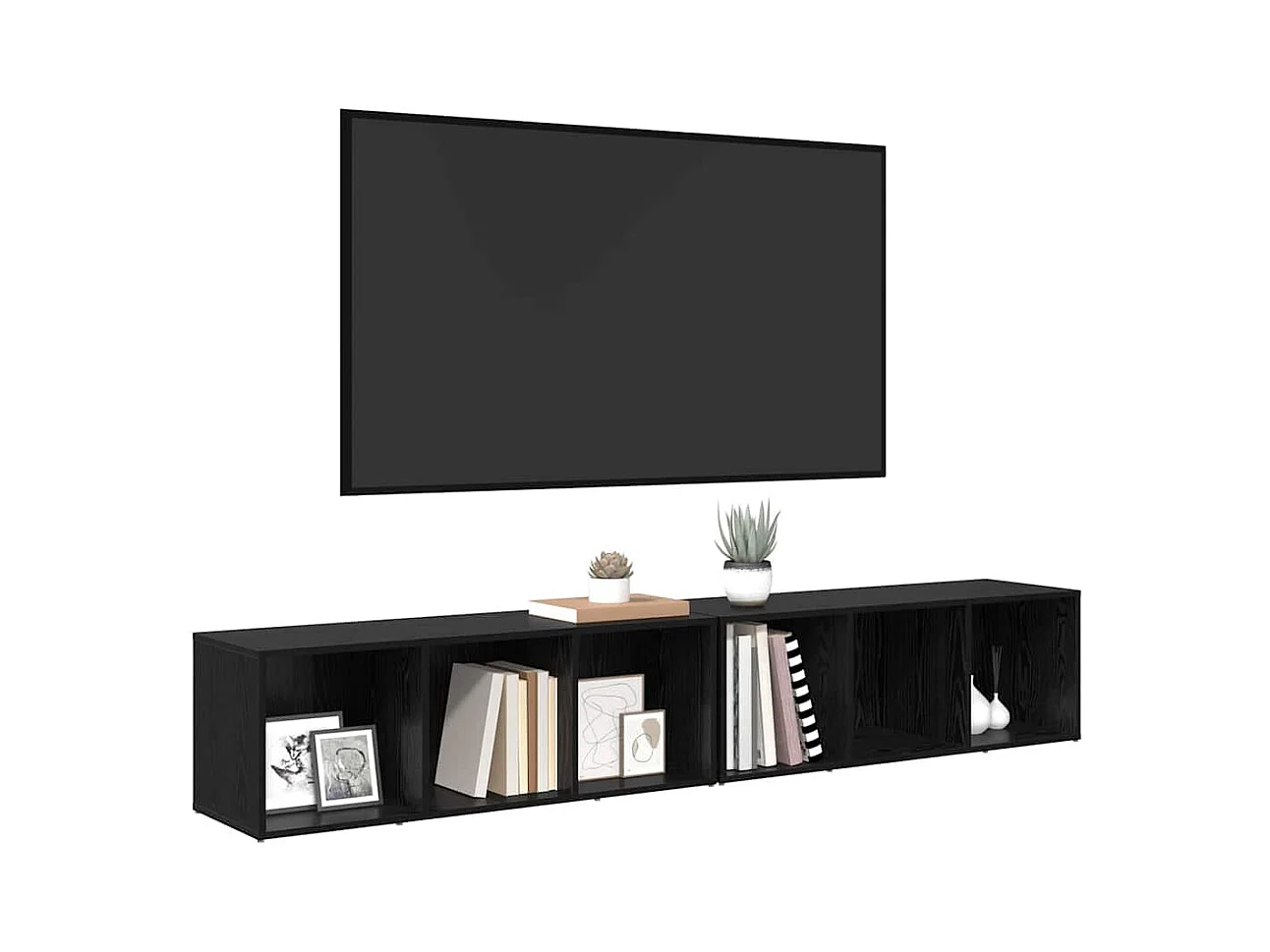 Conjunto de Mueble de TV | Mueble de salón Roble Negro Madera contrachapada