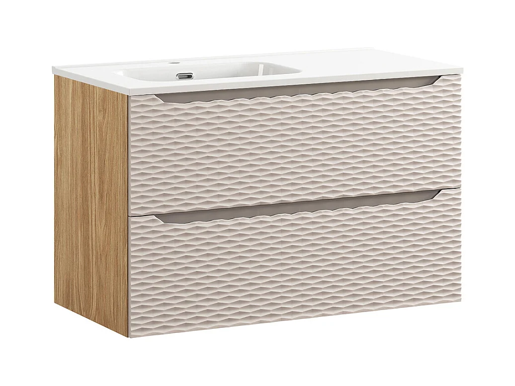 Conjunto de muebles con lavabo individual encastrado lado izquierdo 90cm y columna Elora Beige y madera