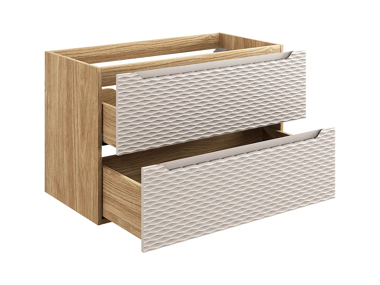 Conjunto de muebles con lavabo individual encastrado 80cm y columna Elora Beige y madera
