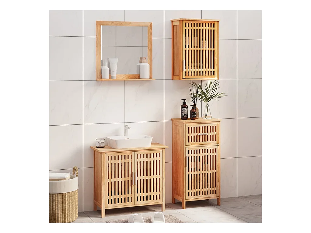Conjunto de muebles de baño 4 piezas madera maciza de nogal