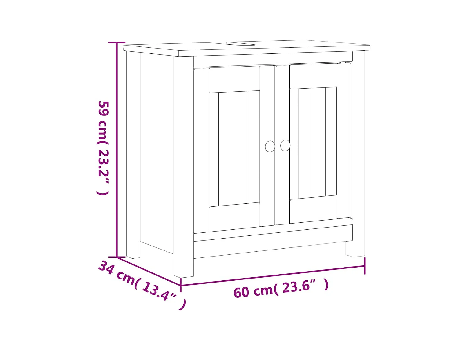 Mueble de baño BERG blanco 60x34x59 cm madera maciza de pino