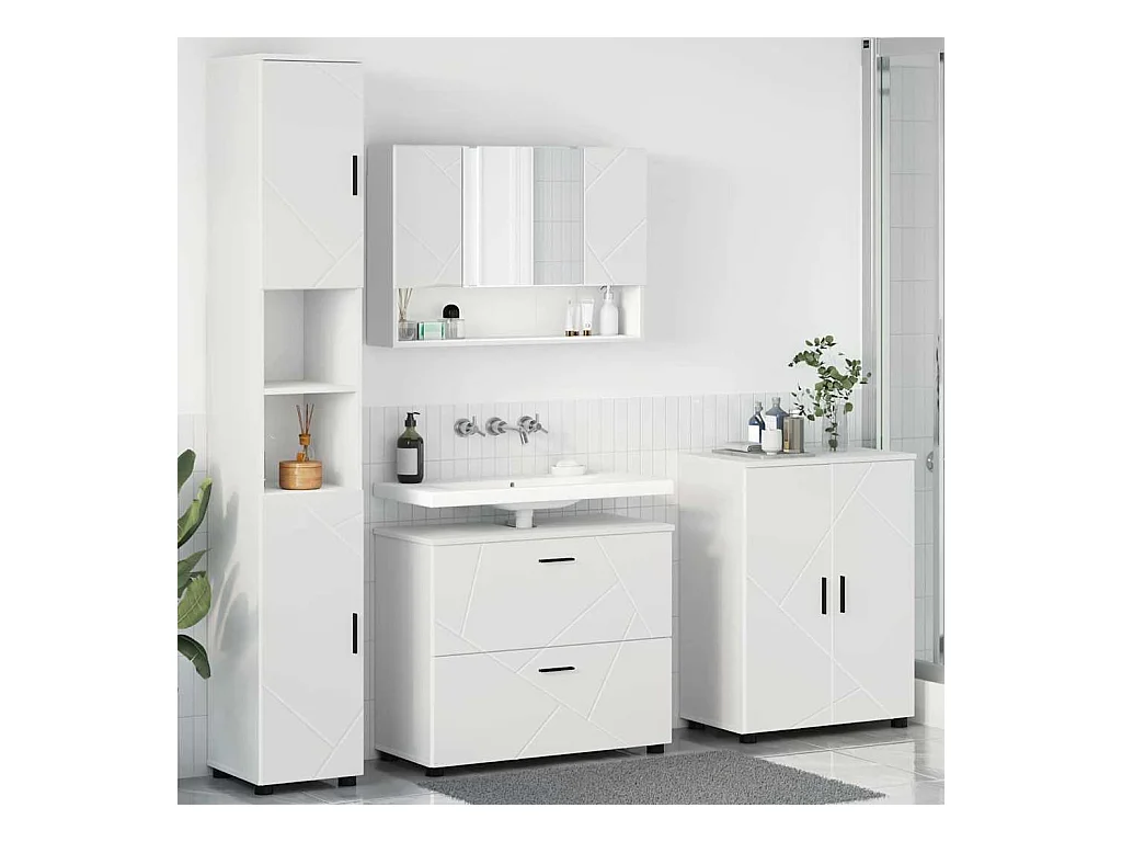 Conjunto de muebles de baño de 3 piezas en blanco brillante
