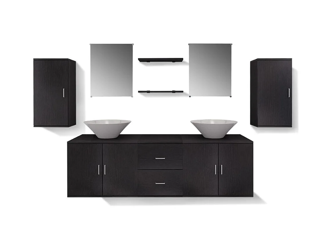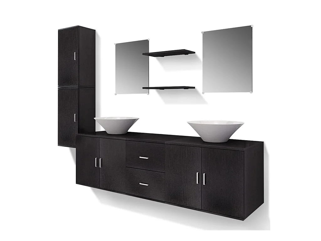 Mueble de baño de 11 piezas con lavabo y grifo Negro