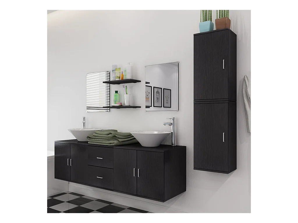 Conjunto de muebles de baño con lavabo 9 piezas Negro