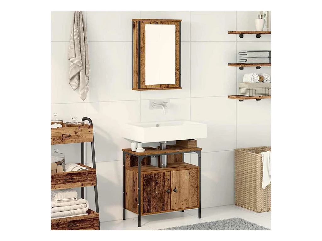 Conjunto de muebles de baño con puerta 2 piezas Marrón