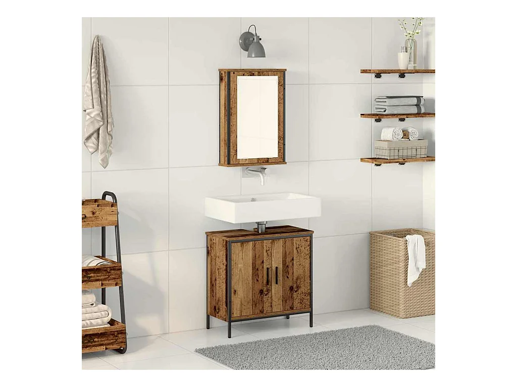 Conjunto de muebles de baño de 4 piezas Madera Roble Ahumado