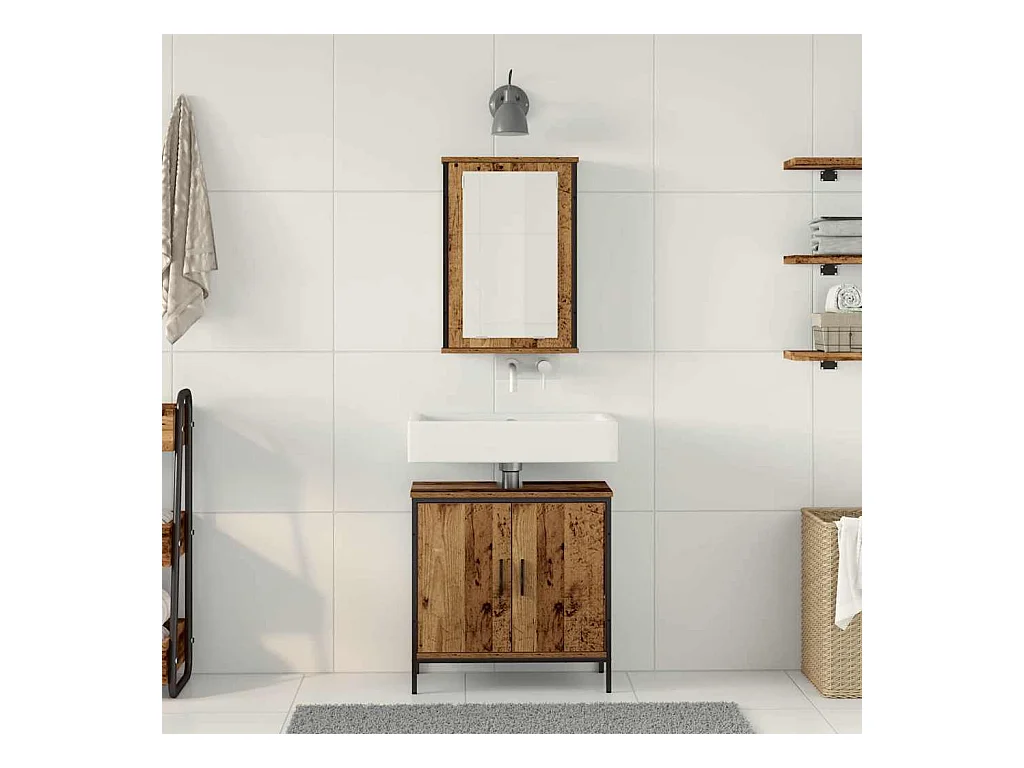 Conjunto de muebles de baño con puerta 2 piezas Marrón