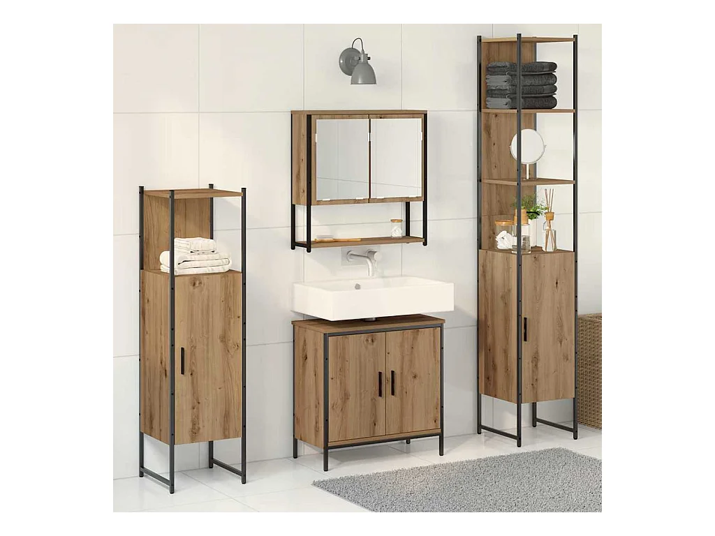 Conjunto de muebles de baño de 4 piezas, roble hecho a mano