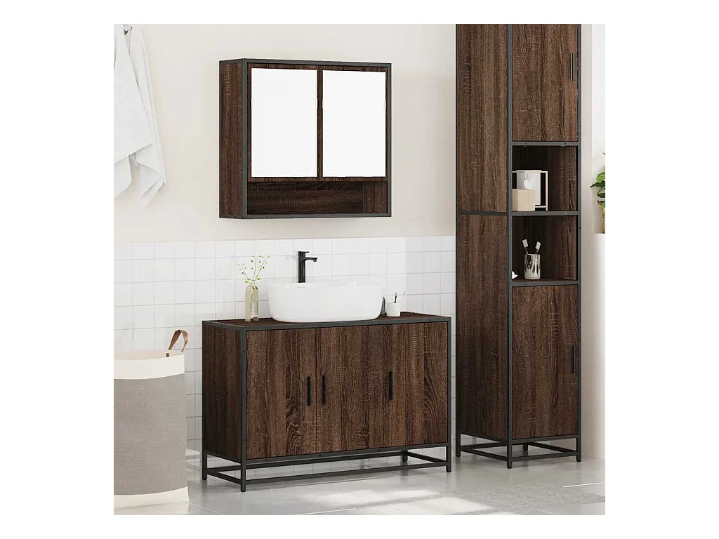 Conjunto de muebles de baño de 3 piezas Roble marrón