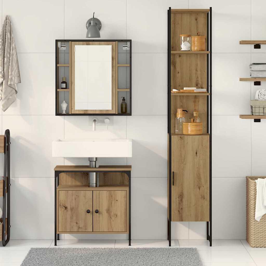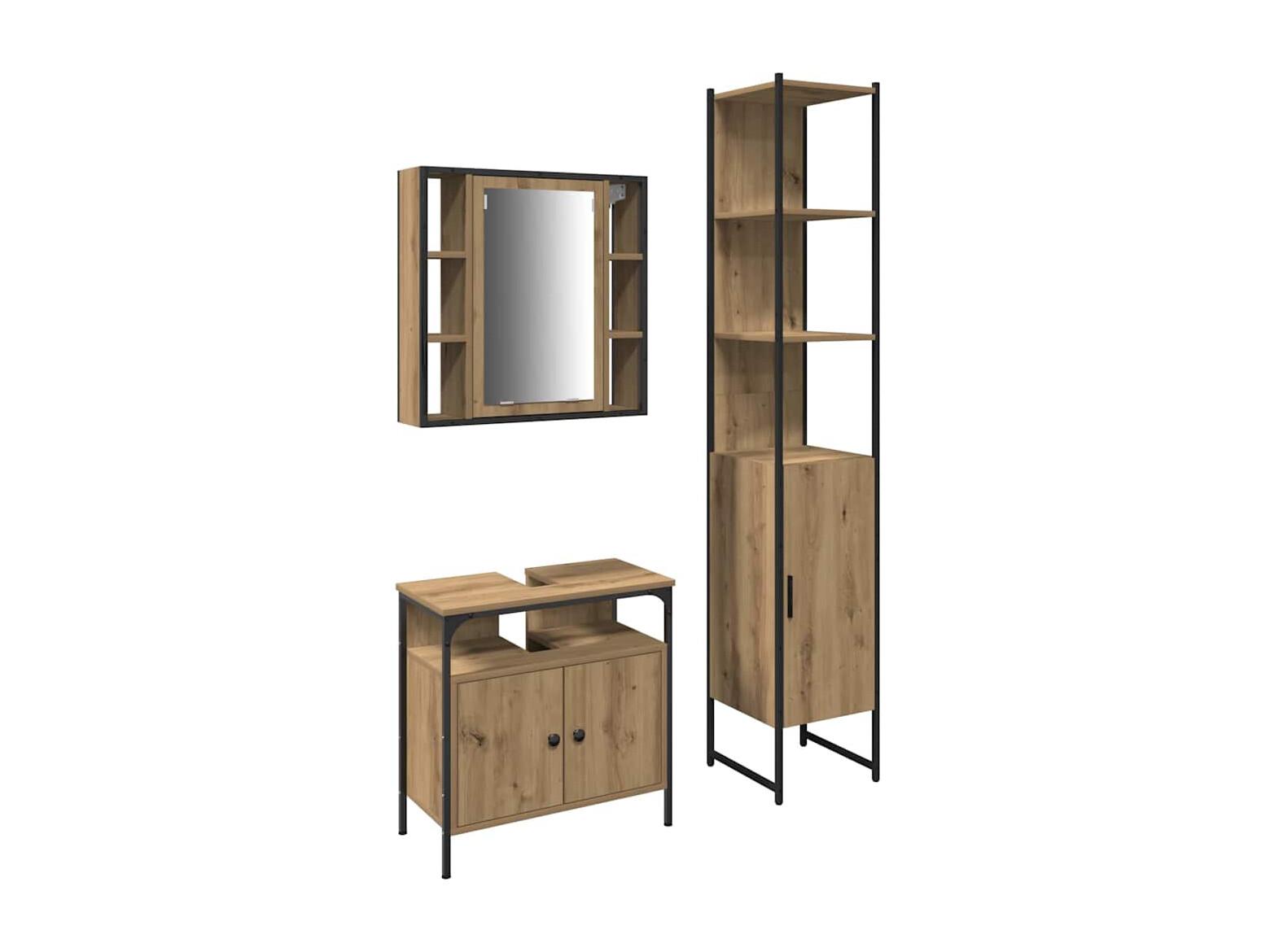Conjunto de muebles de baño de 3 piezas, roble hecho a mano
