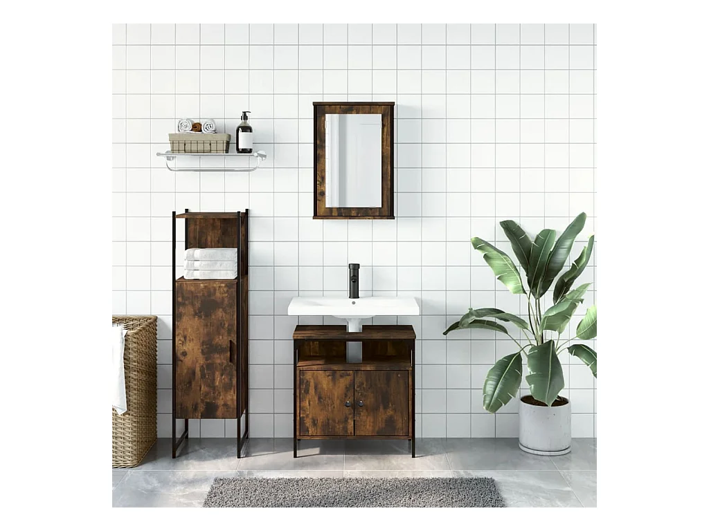 Conjunto de muebles de baño de 4 piezas Madera Roble Ahumado