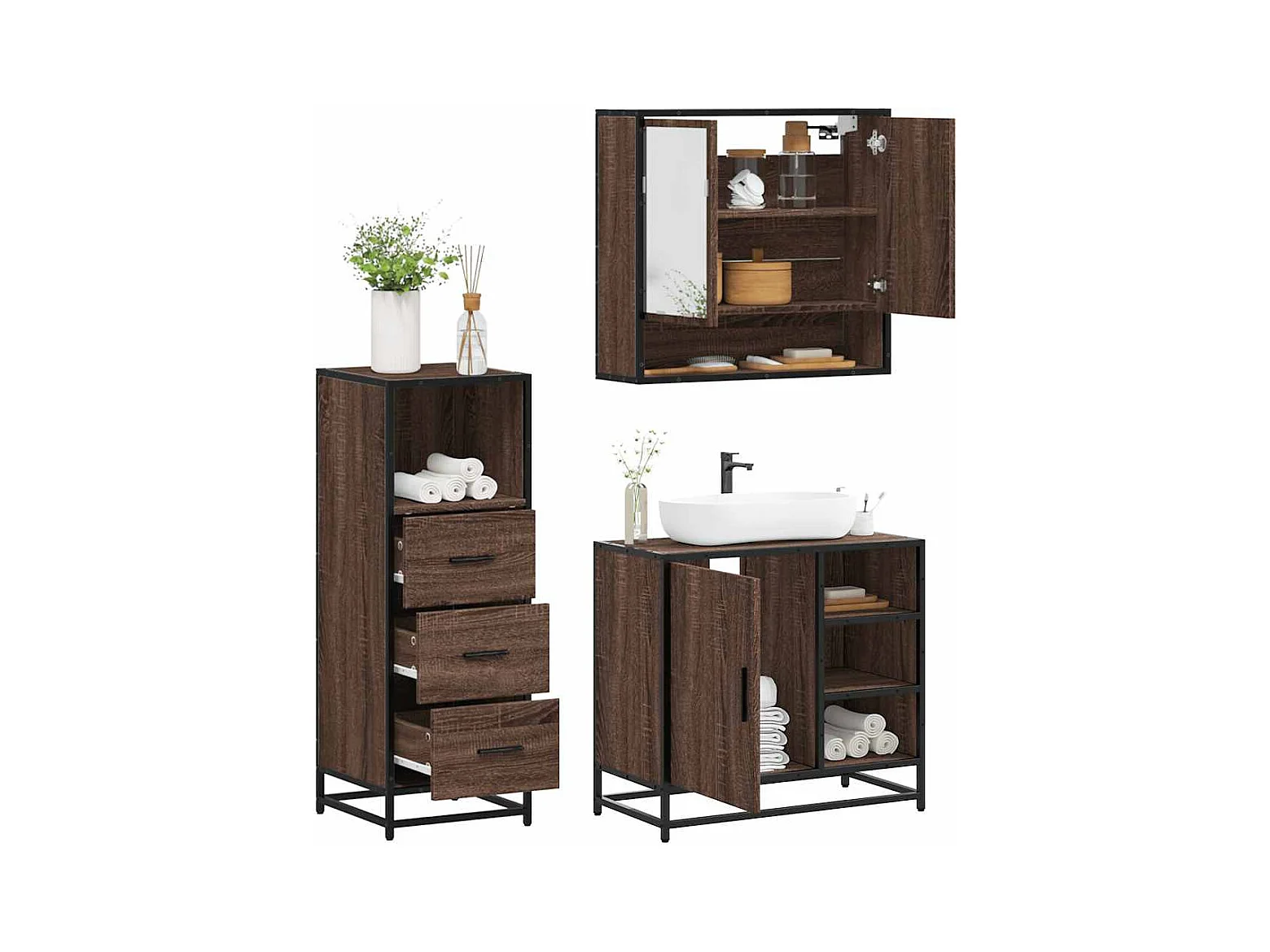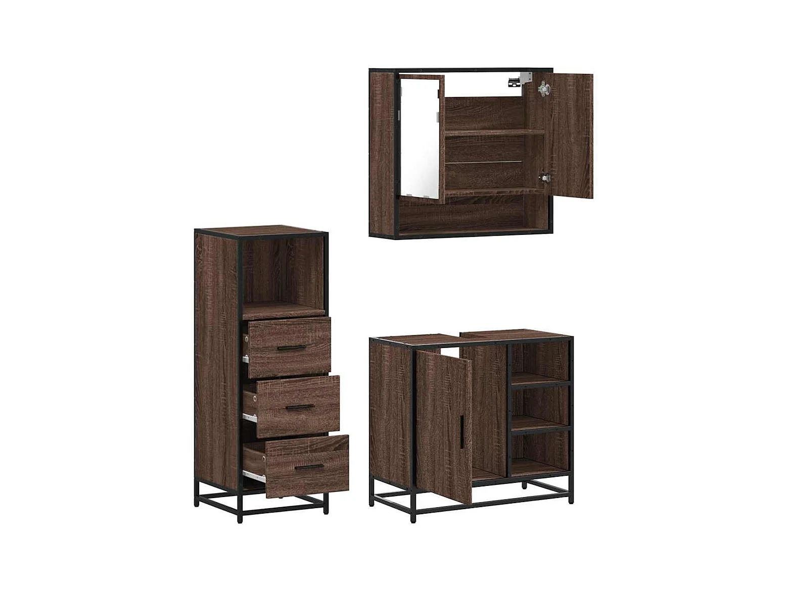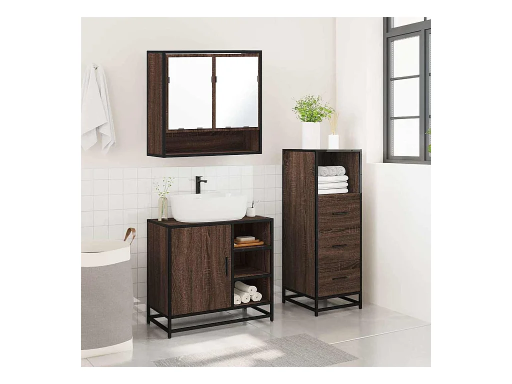 Conjunto de muebles de baño de 3 piezas Roble marrón