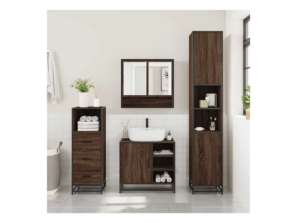 Conjunto de muebles de baño de 4 piezas roble marrón