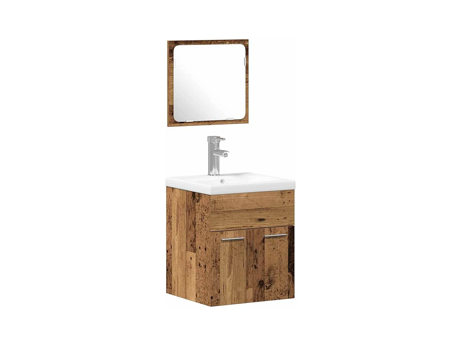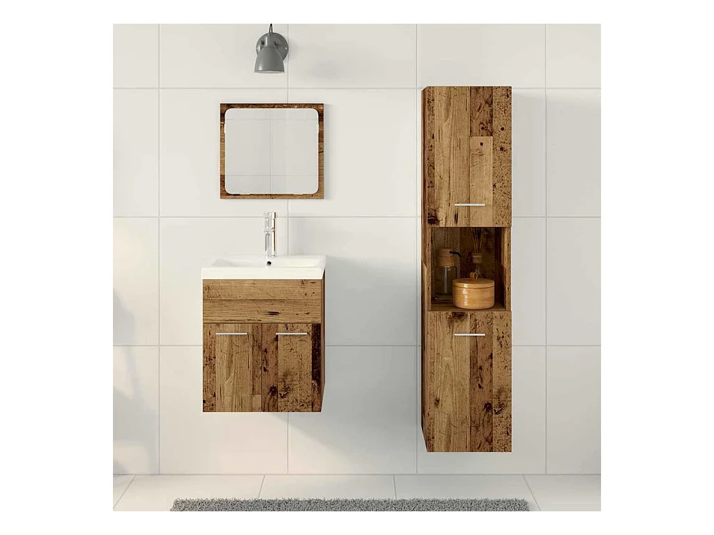 Conjunto de muebles de baño de 4 piezas en madera antigua