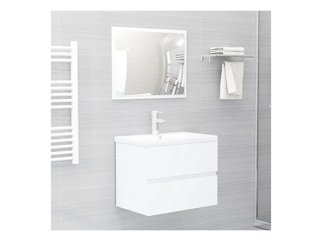 Juego de muebles de baño madera de ingeniería blanco brillo ES618209