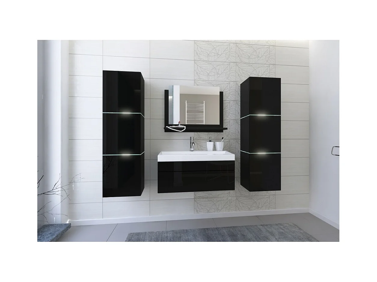Conjunto de muebles de baño negro colección BIRD. 2 columnas, mueble bajo lavabo, lavabo de 80 cm, espejo, sifón y luces LED.
