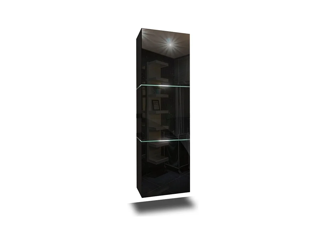 Conjunto de muebles para baño negro colección OWL, columna, mueble bajo lavabo de 60 cm, espejo, sifón y LEDs.