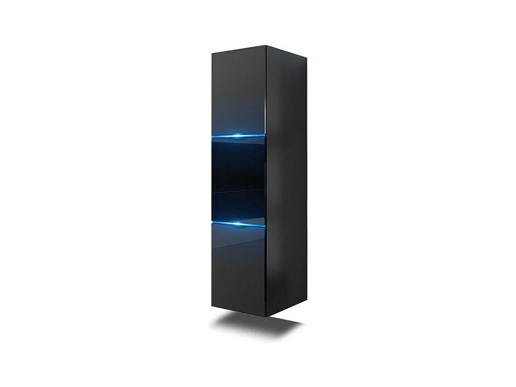 Conjunto de muebles de baño negro colección OWL. Columna, mueble bajo lavabo, espejo, sifón y leds.