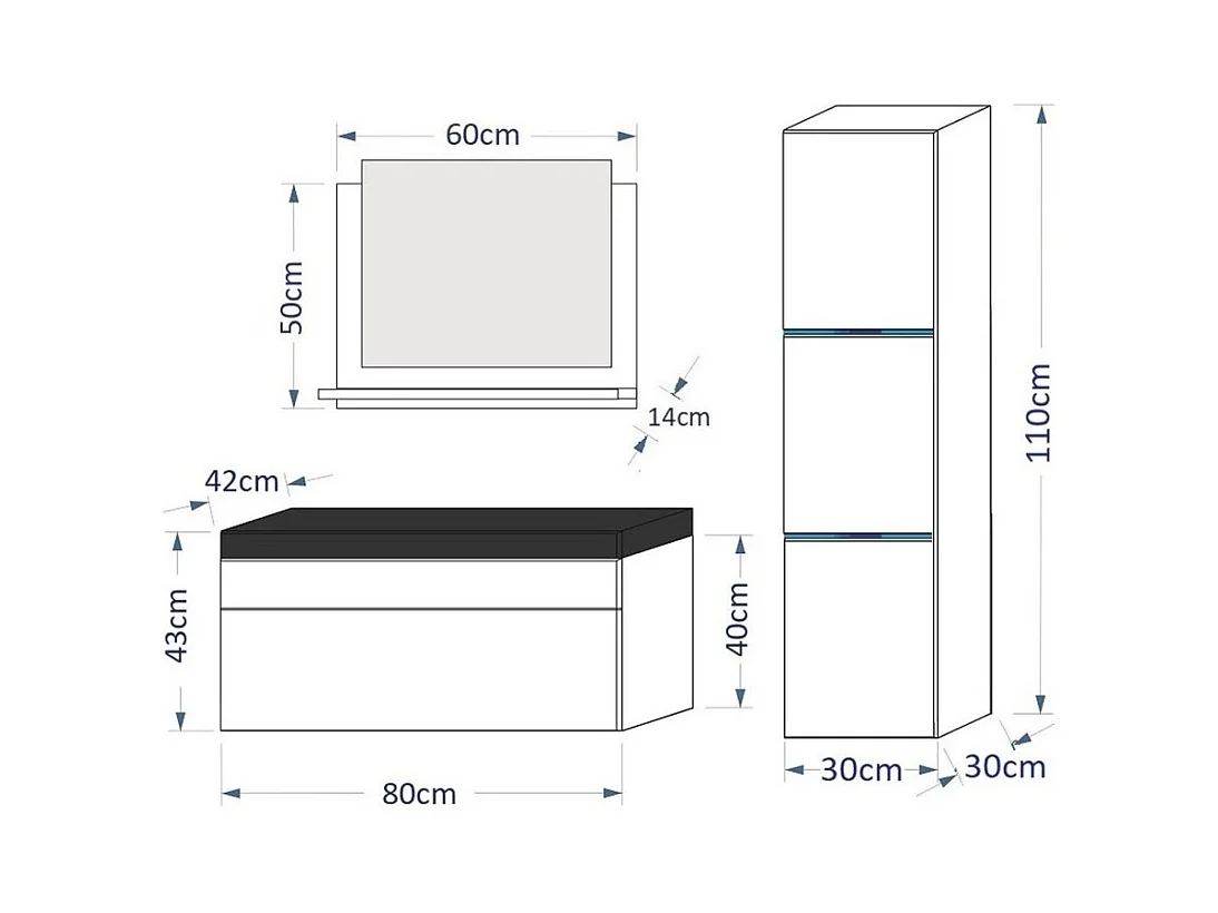 Conjunto de muebles de baño negro colección BIRD, columna, mueble bajo lavabo de 80 cm, espejo.