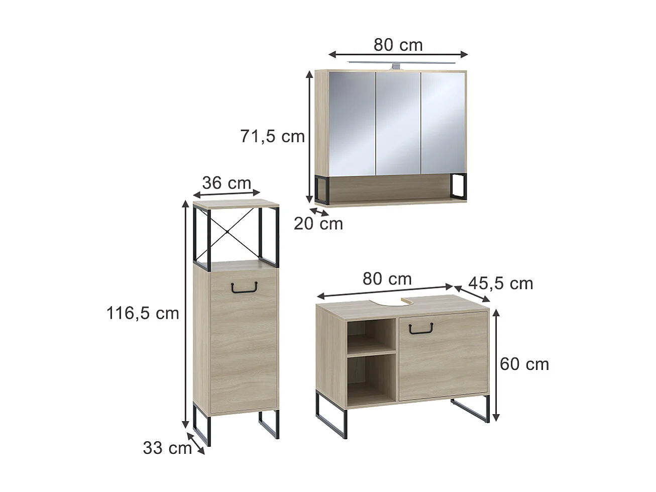 Pack Baño Roble Alaska: Mueble, Espejo, Lavabo, Columna Industrial