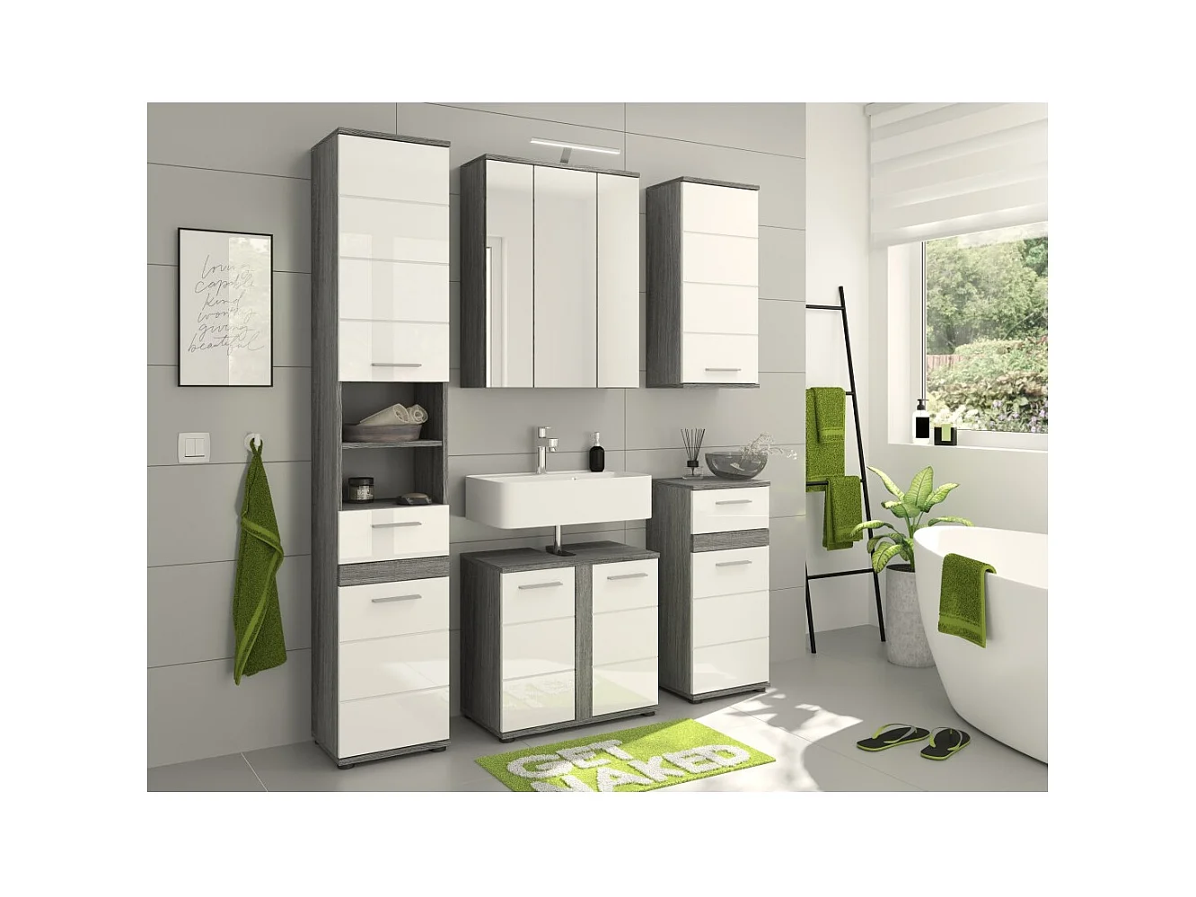 Conjunto de muebles de baño WILLIAM – Gris oscuro y blanco – 60x191x34 cm – Con LED