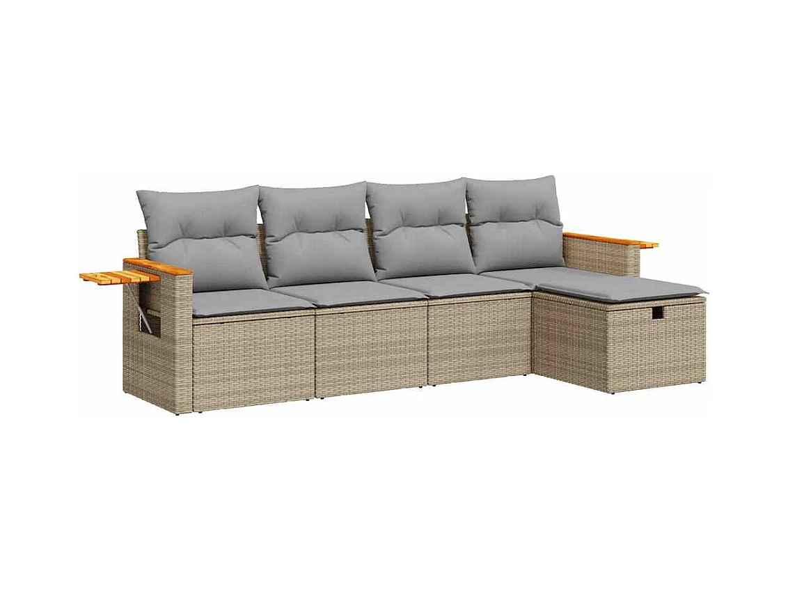Conjunto de muebles de jardín con cojines 5 piezas resina tejida beige