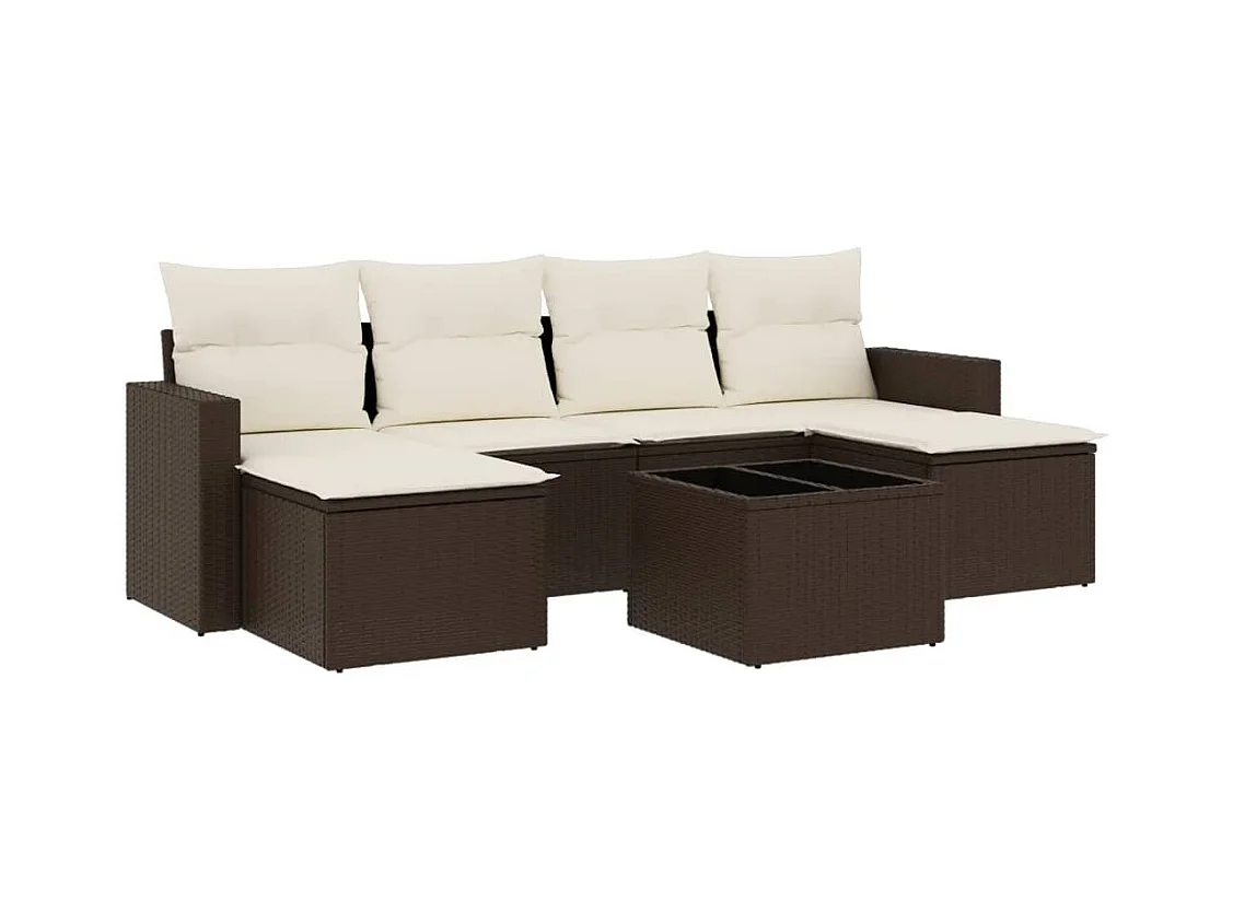 Conjunto de muebles de jardín con cojines 7 piezas resina mimbre marrón