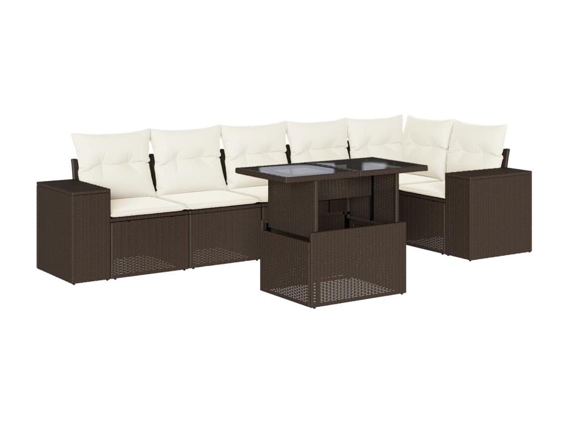 Conjunto de muebles de jardín con cojines 7 piezas resina mimbre marrón