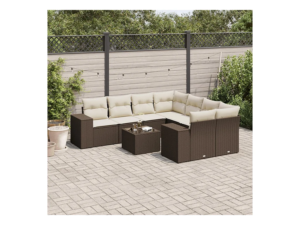 Conjunto de muebles de jardín de 8 piezas con cojines marrones en resina trenzada