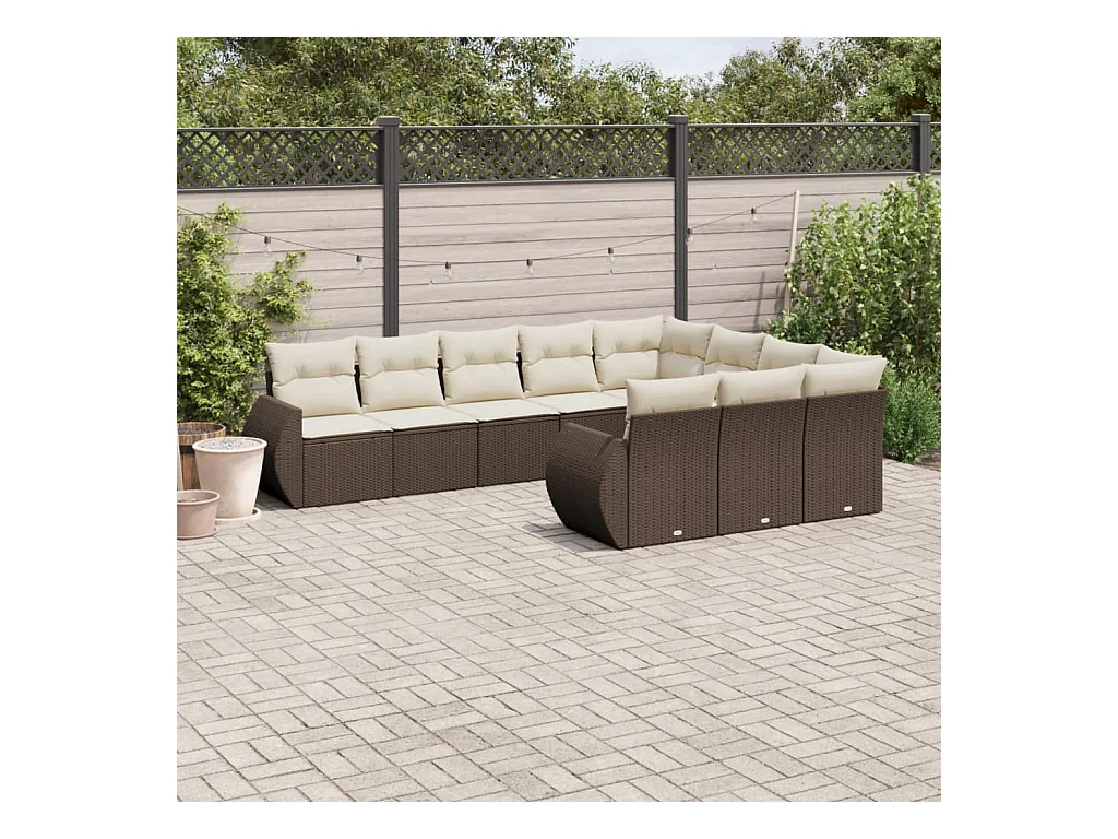 Conjunto de muebles de jardín de 10 piezas con cojines marrones en resina trenzada