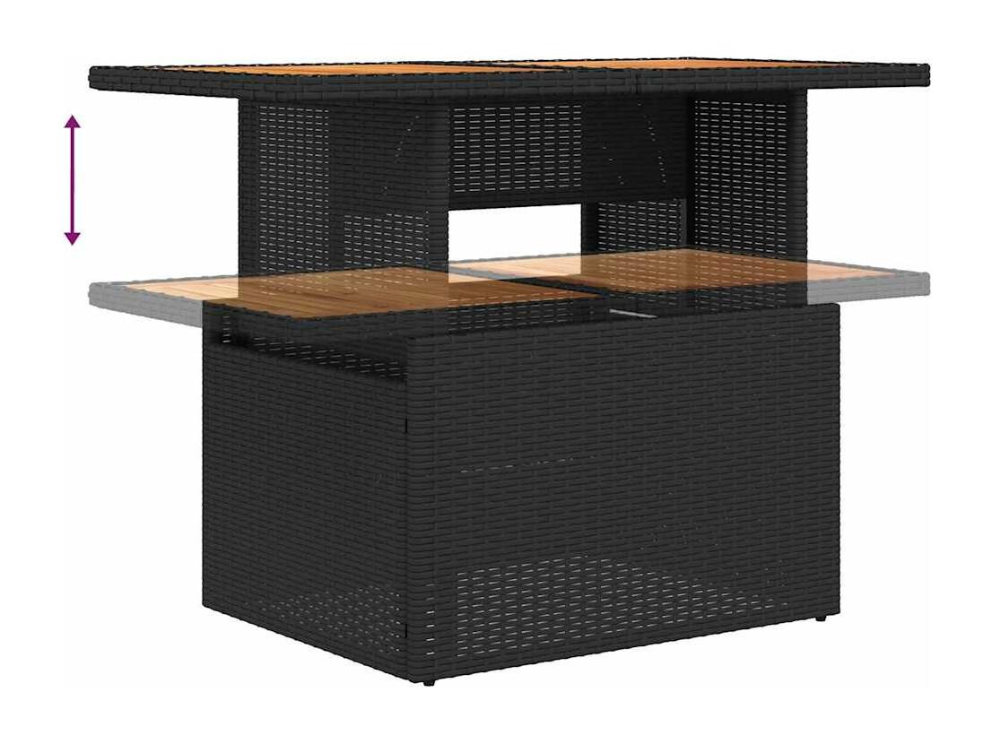 Conjunto de muebles de jardín de 11 piezas con cojines negros en resina trenzada