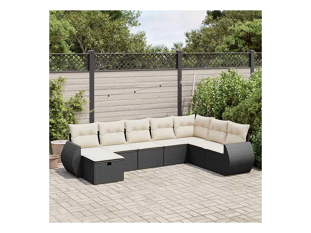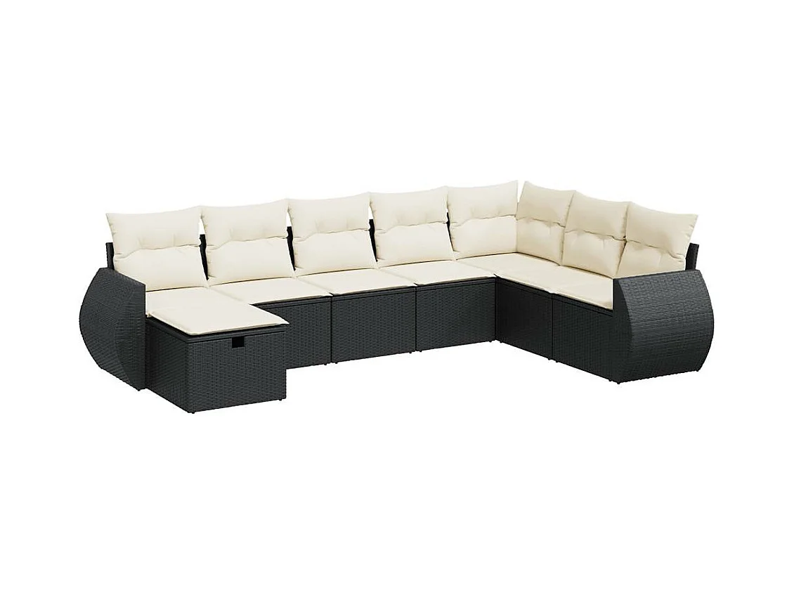 Conjunto de muebles de jardín de 8 piezas con cojines negros en resina trenzada