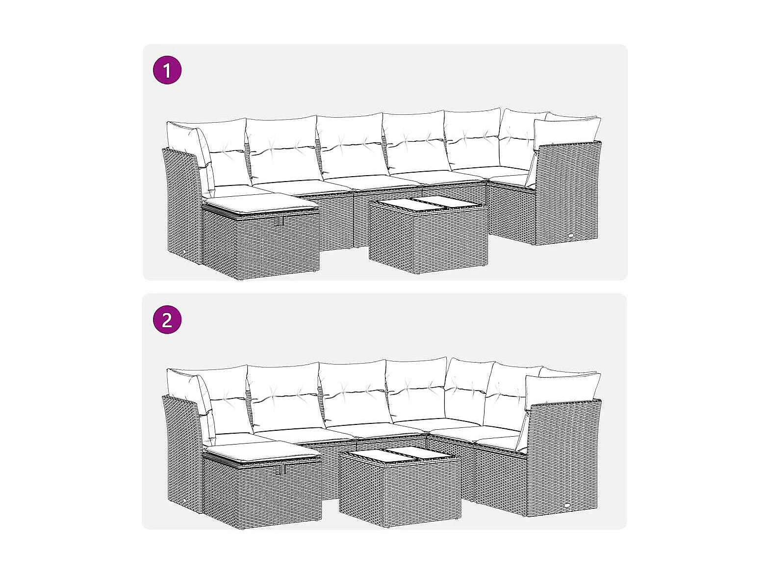 Conjunto de muebles de jardín de 8 piezas con cojines de mimbre de resina gris
