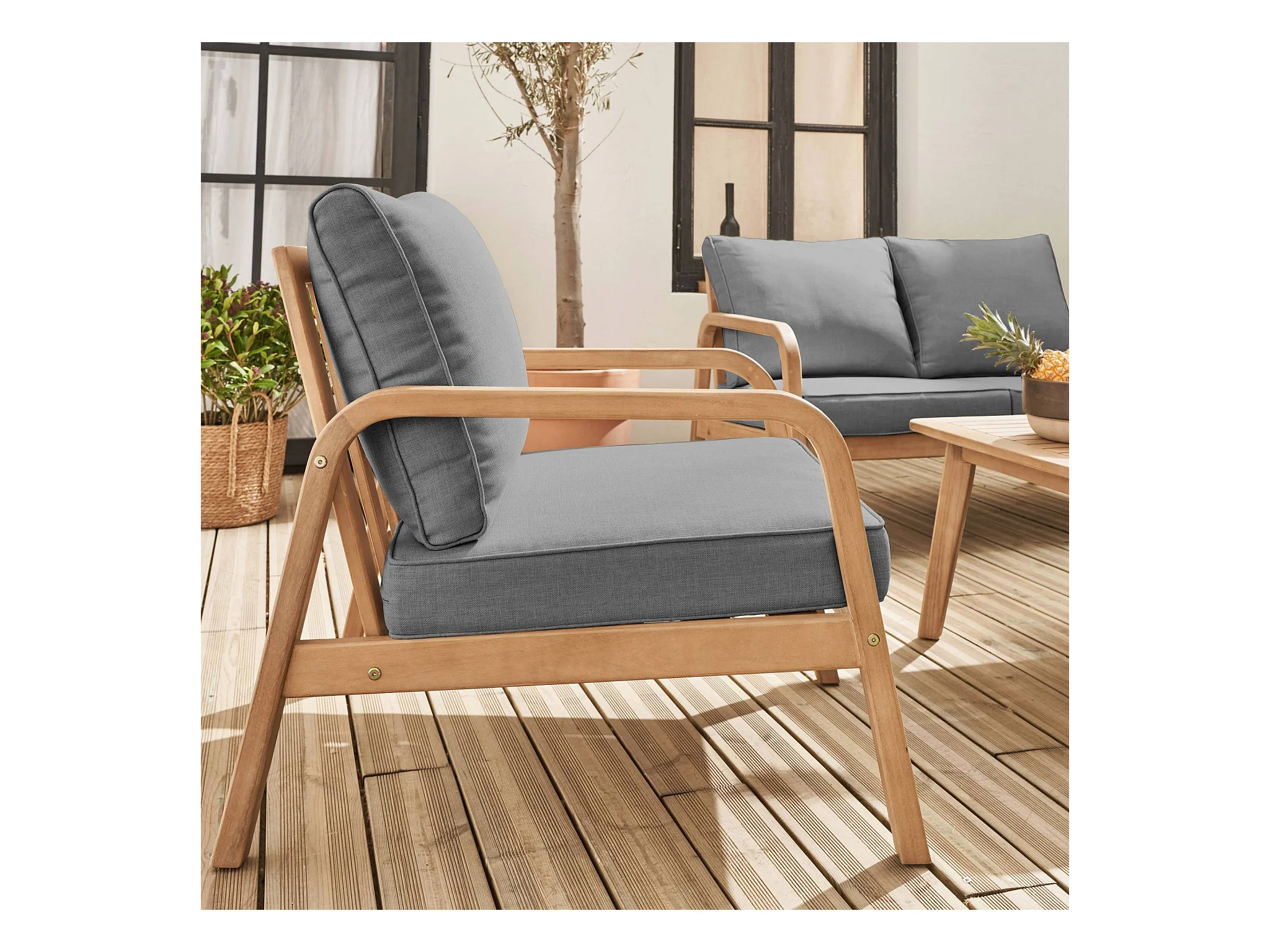 Conjunto de muebles de jardín de madera acacia, 4 plazas gris