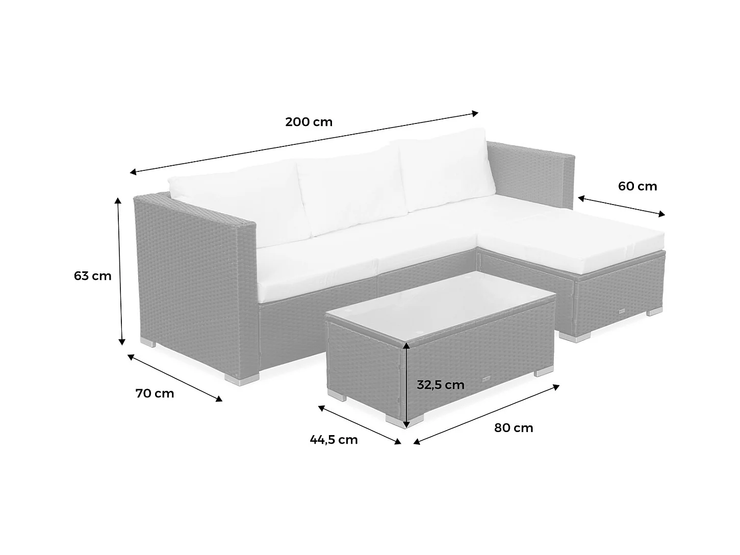 Conjunto de jardín - sofá 2+1+1 plazas